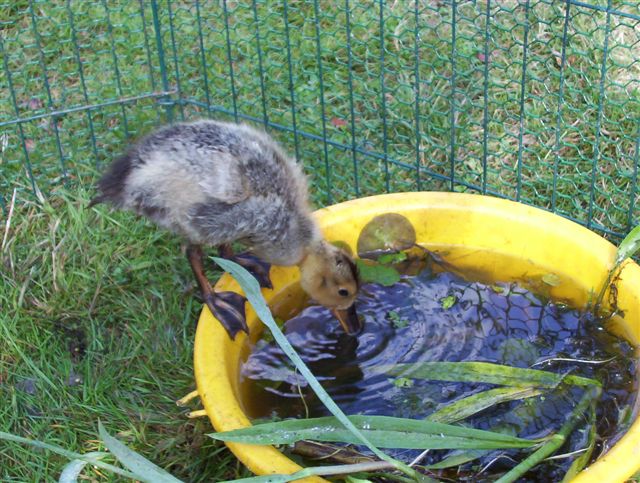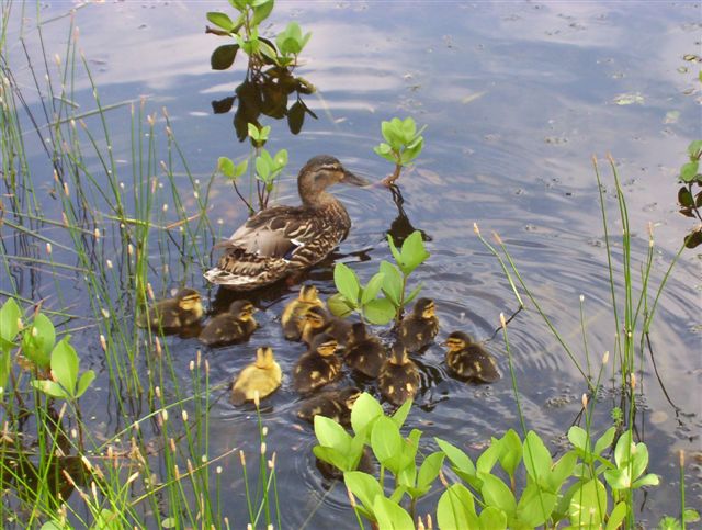 In de vijver zwemt, net als vorig jaar april, een eendenpaar. Elke dag komen die twee even langs om een paar rondjes te peddelen, waterplanten naar binnen te slobberen en zich op de waterkant te poetsen. Daarna vliegen ze weg. De volgende dag komen ze weer vrolijk aangevlogen. Bang zijn ze niet. Als ik naar buiten kom, zwemmen ze naar me toe. Soms krijgen ze een stukje brood.