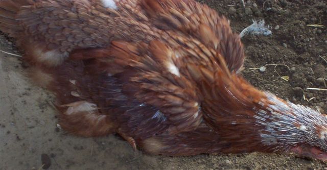 in de rui. Juist als ze een warme jas nodig heeft, gaat ze half in haar blootje lopen. Volgens mij is ze er niet blij mee. Ze is veel schichtiger dan anders en blijft vaak in het kippenhok.