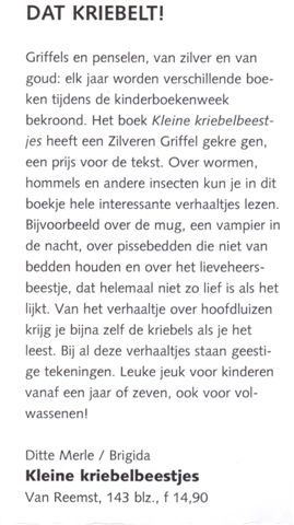© Uit de boekenkast 1997, Uitgeverij de Inktvis - tekening Brigida (uit: Kleine kriebelbeestjes) |