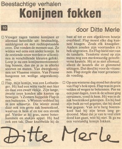 Ook op de jeugdpagina van de Gazet van Antwerpen verschenen enkele columns, zoals die over mijn konijn Flap.